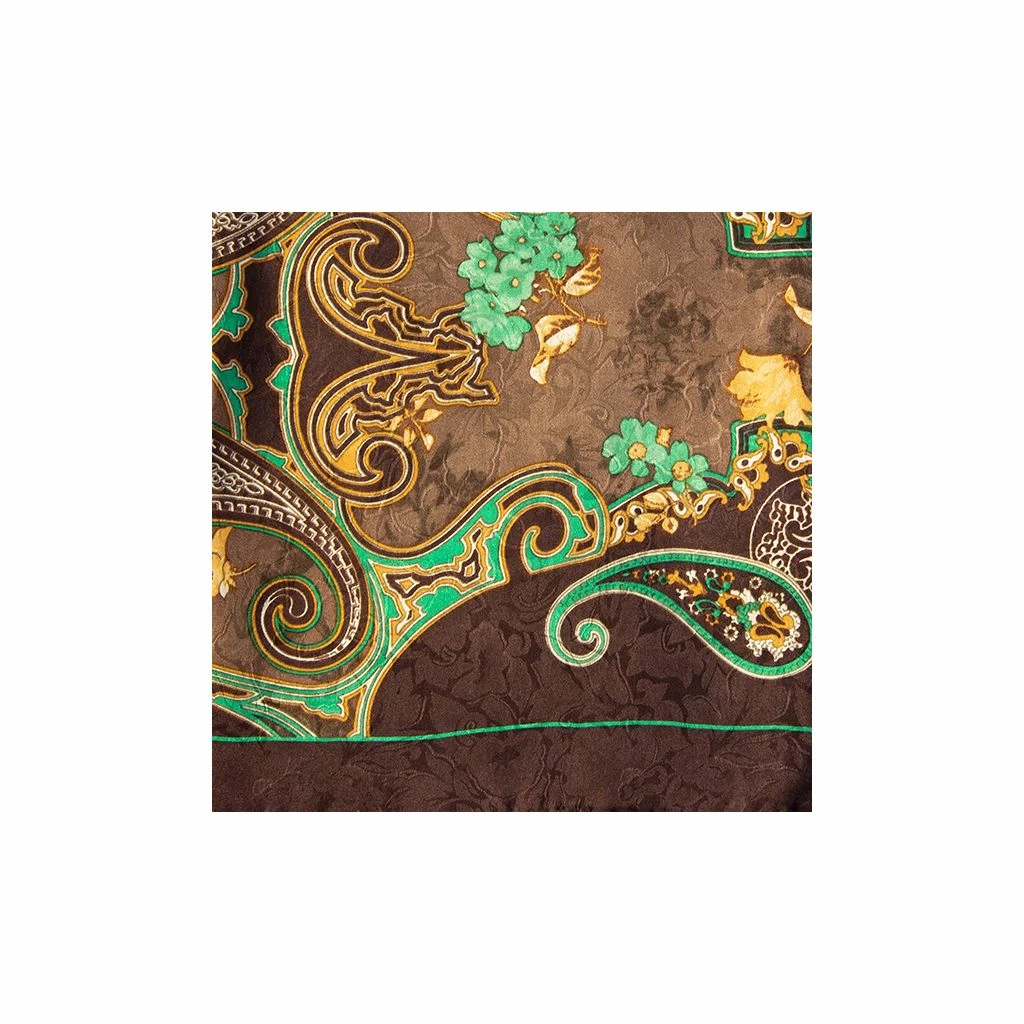 - Stylish charmeuse printed silk scarf in hickory brown and mint green