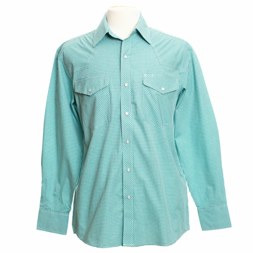 - Pearl snap western shirt with a pearl button at neck for the most comfortable style of your choice