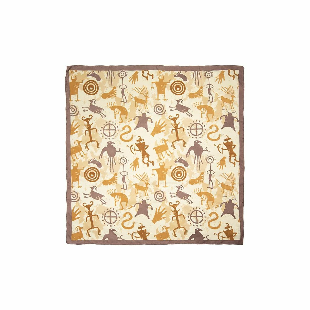 - Stylish Southwest printed silk scarf featuring cave drawings